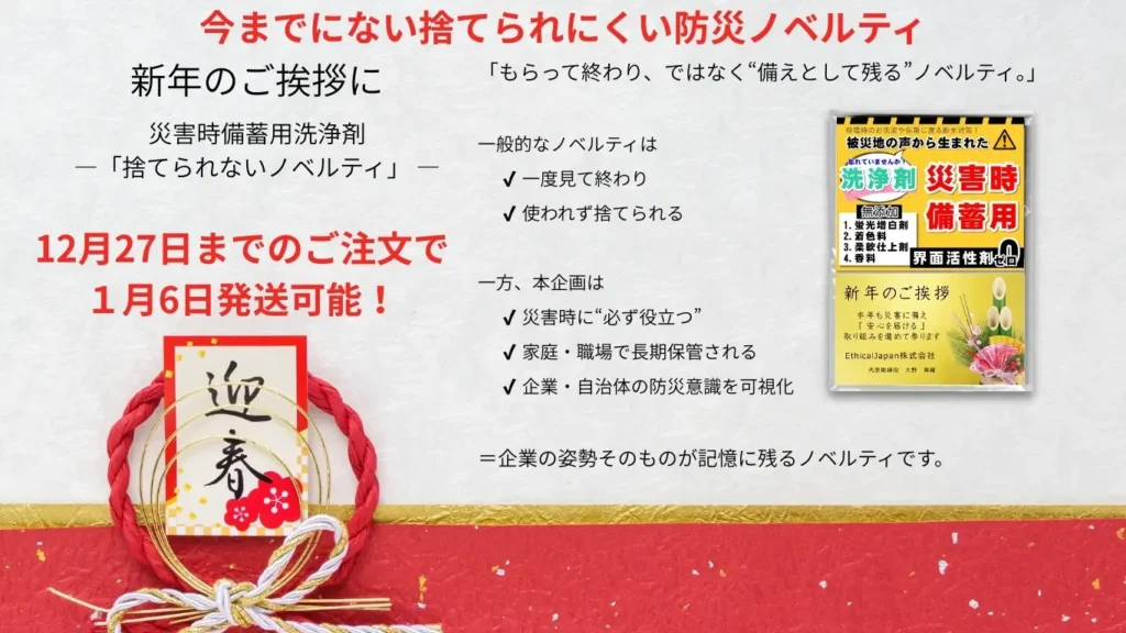 水・食料・トイレの次に必要な備えとは?“清潔”に着目した防災ノベルティ