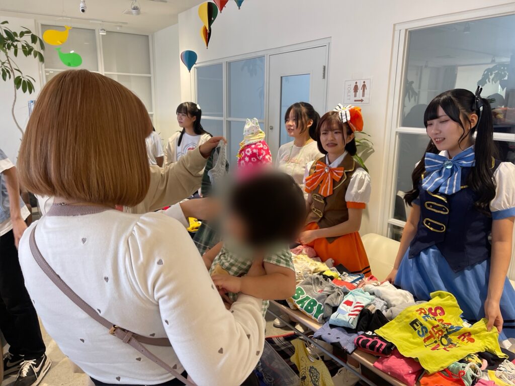 #熊本 の #SDG’s応援アイドル#EarthAceKUM(#アースエース熊本) のメンバーが、一緒に遊んでくれたり、子ども服のサイズ選びなどのお手伝いをしてくれます。