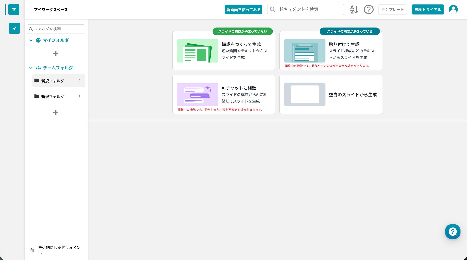 そこで今回、HOME画面を目的別に再設計し、最短でスライド作成に入れる導線へ改善しました。